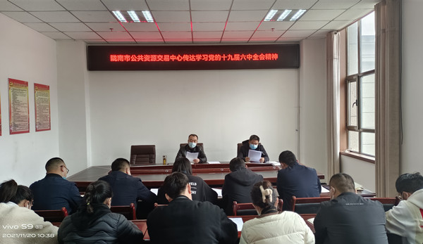 11月20日,市公共資源交易中心召開黨員干部會議,傳達(dá)學(xué)習(xí)黨的十九屆六中全會精神,研究部署貫徹落實工作。黨組書記、主任張巍主持會議并講話。