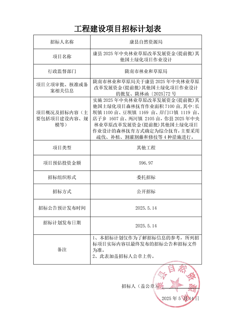 康縣2025年中央林業(yè)草原改革發(fā)展資金(提前批)其他國土綠化項目作業(yè)設(shè)計
