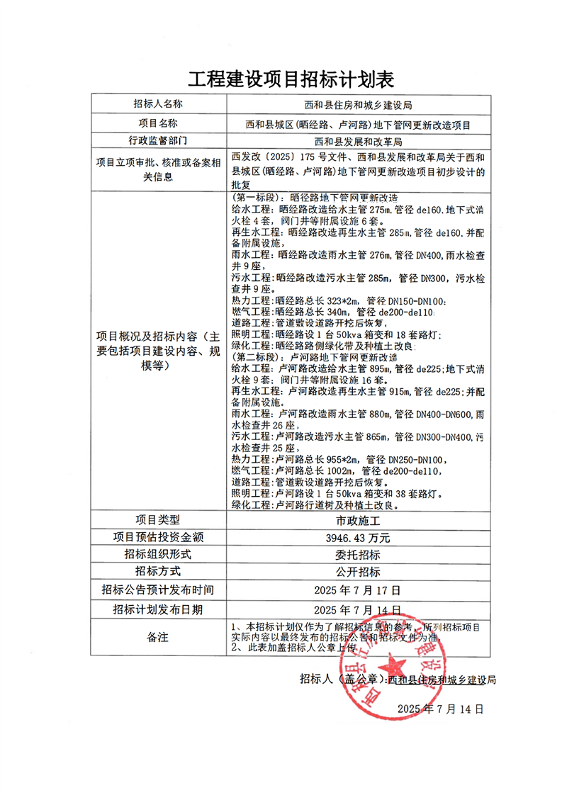 西和縣城區(qū)(曬經(jīng)路、盧河路)地下管網(wǎng)更新改造項目