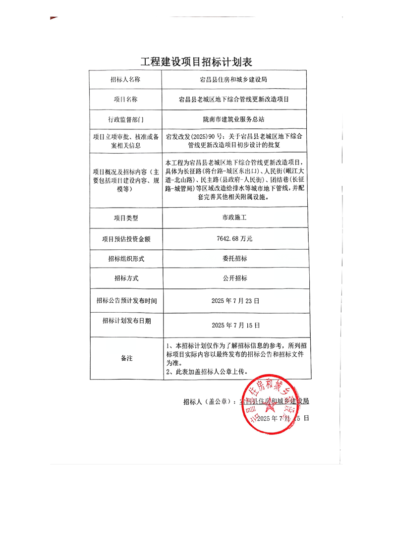宕昌縣老城區(qū)地下綜合管線更新改造項(xiàng)目