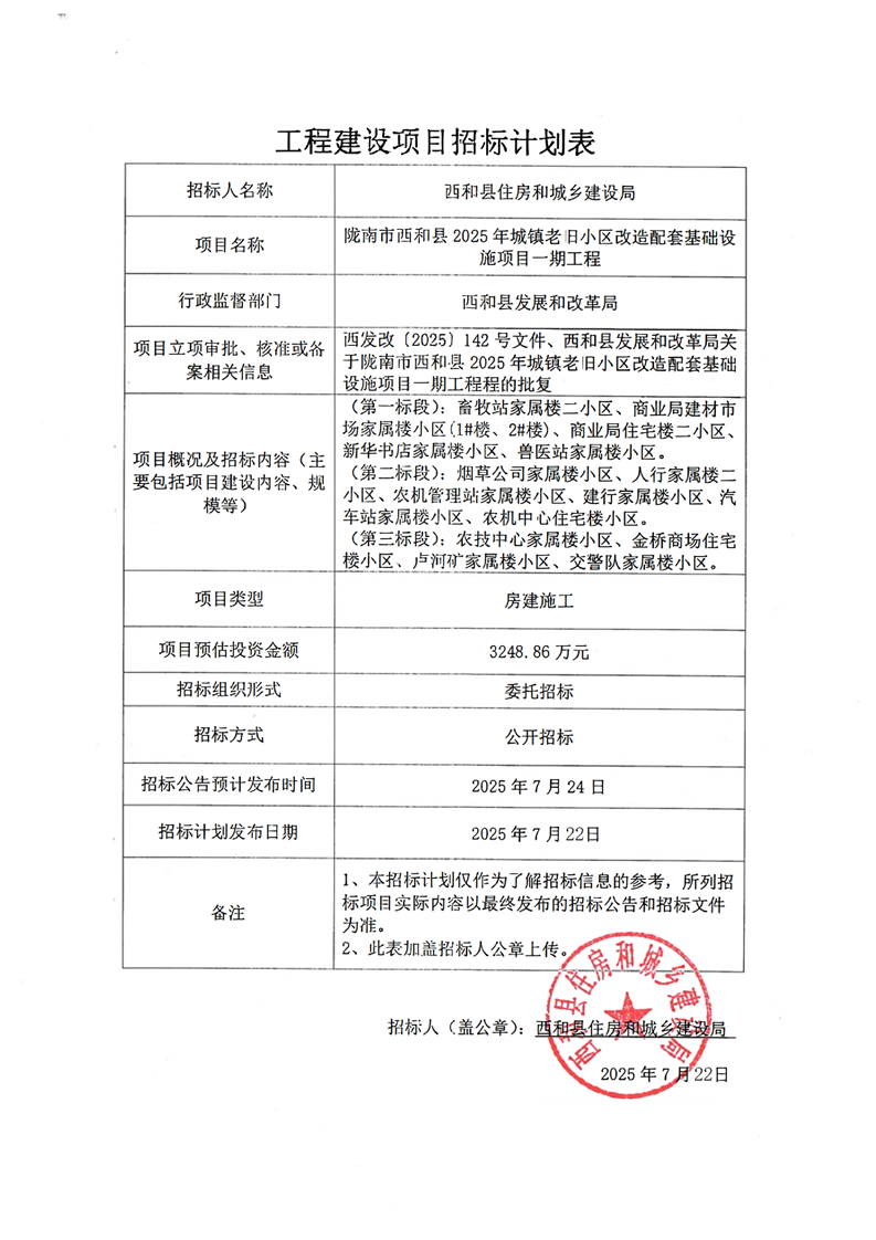 隴南市西和縣2025年城鎮(zhèn)老舊小區(qū)改造配套基礎設施項目一期工程