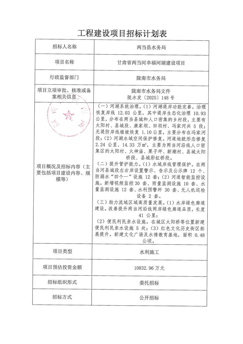 甘肅省兩當河幸福河湖建設(shè)項目