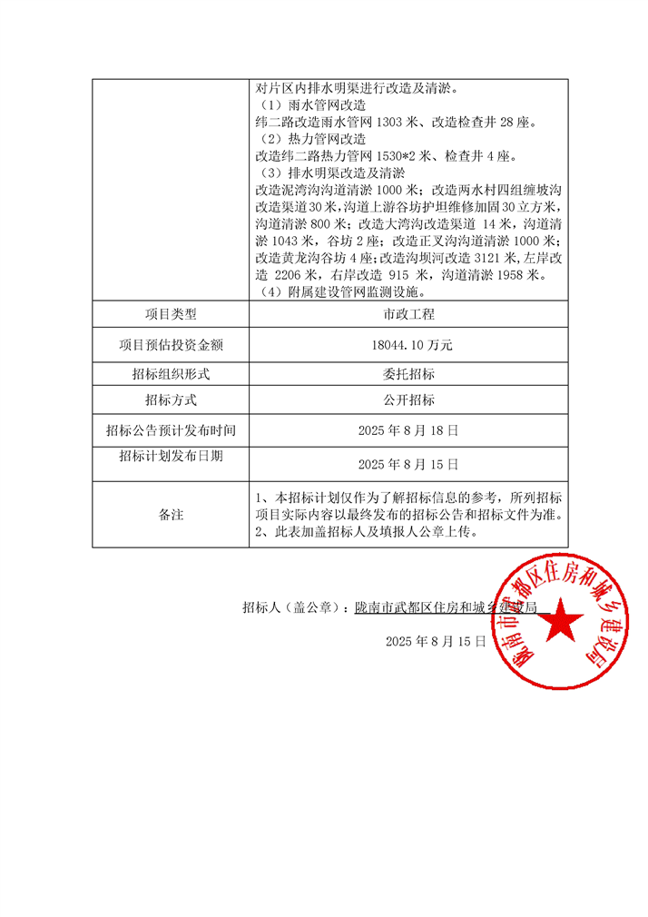 隴南市武都區(qū)兩水片區(qū)地下管網(wǎng)綜合改造項(xiàng)目