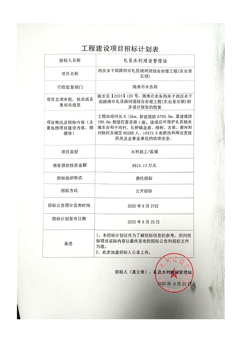 西漢水干流隴南市禮縣段河道綜合治理工程(東臺至石壩)