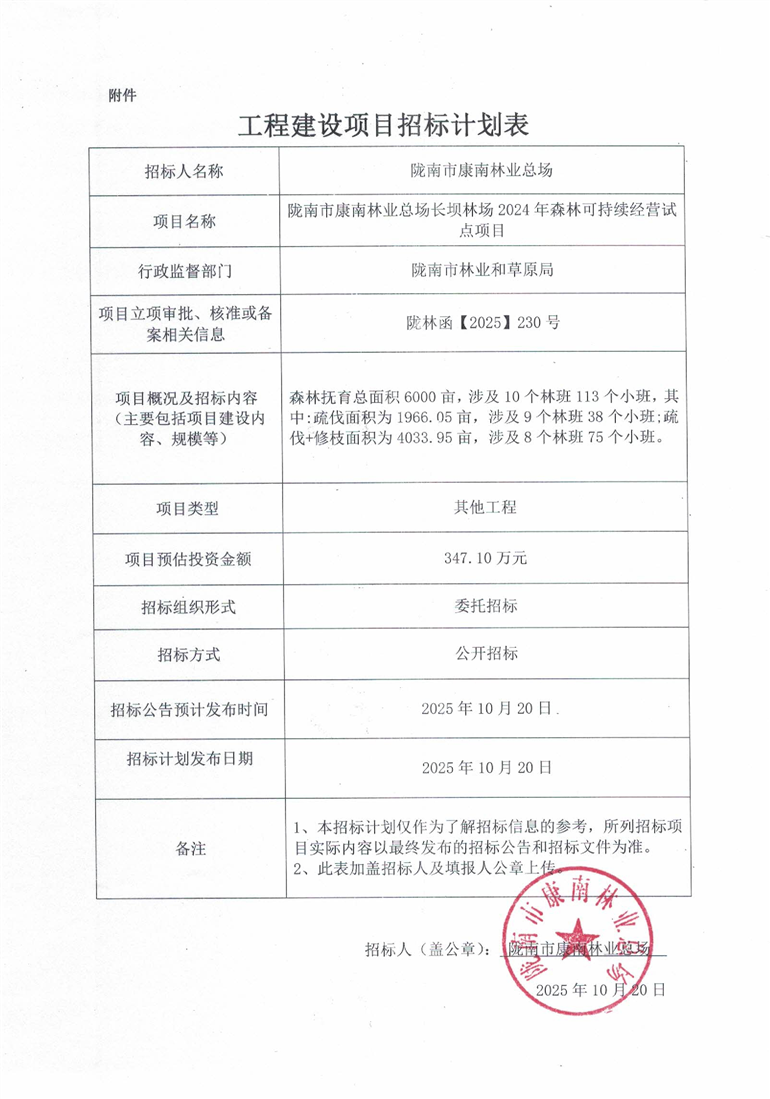 隴南市康南林業(yè)總場長壩林場2024年森林可持續(xù)經(jīng)營試點項目