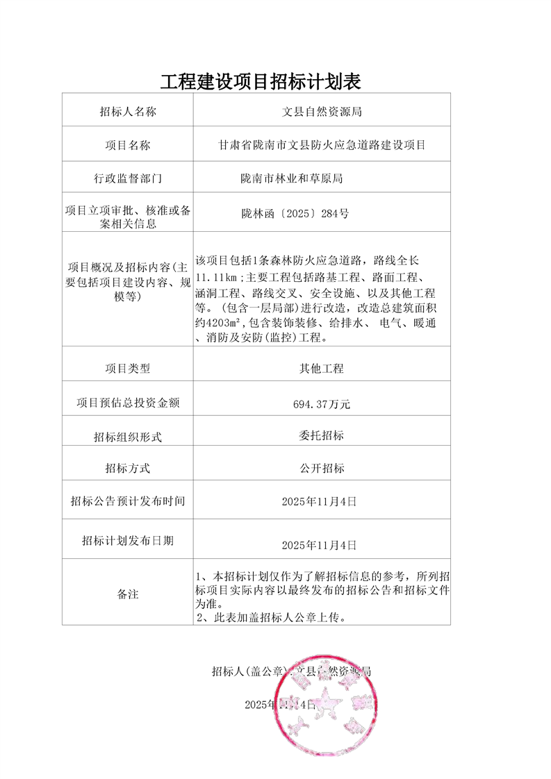 甘肅省隴南市文縣防火應(yīng)急道路建設(shè)項(xiàng)目