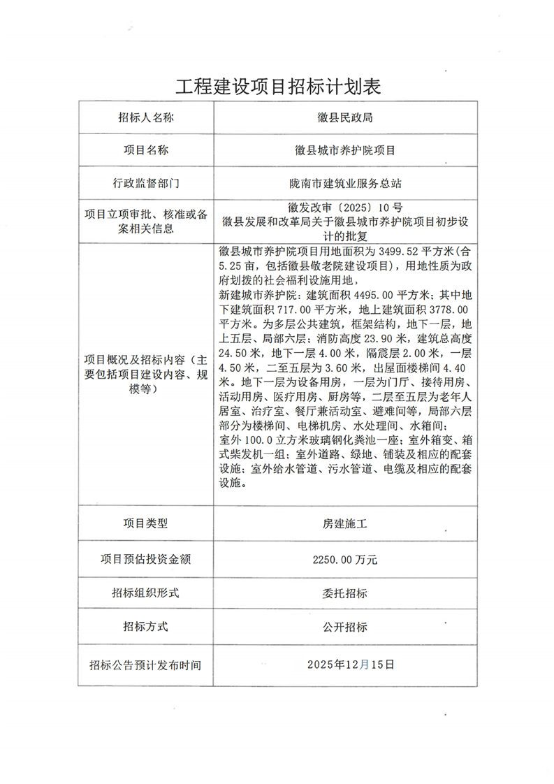 徽縣城市養(yǎng)護院項目