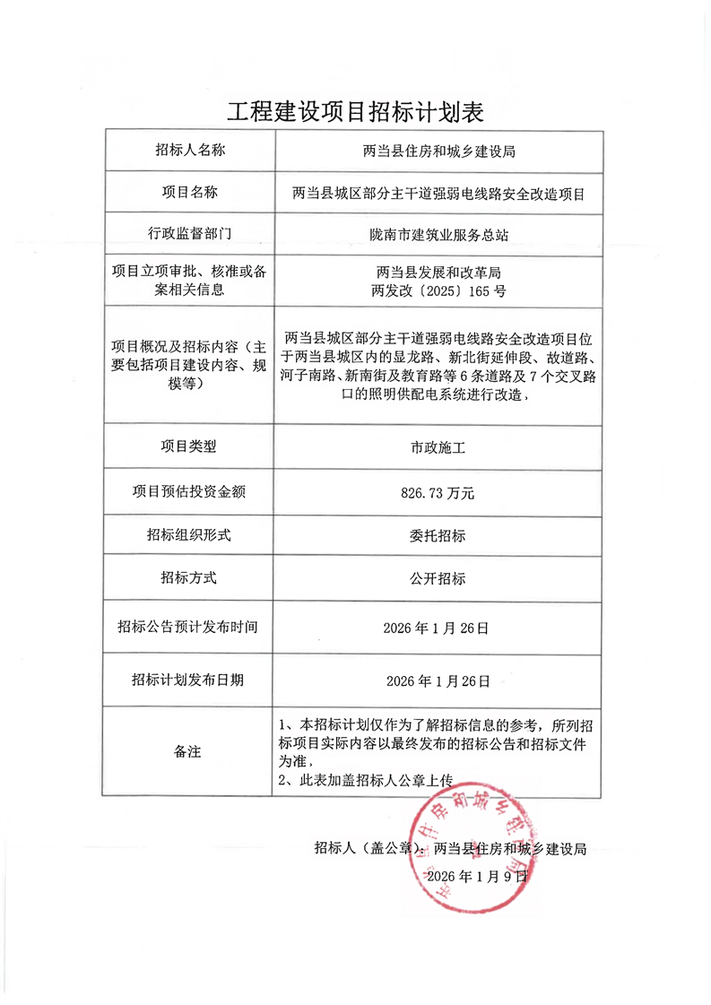 兩當(dāng)縣城區(qū)部分主干道強弱電線路安全改造項目