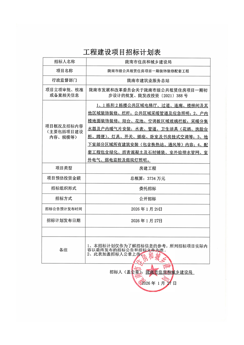 隴南市級公共租賃住房項(xiàng)目一期裝飾裝修配套工程