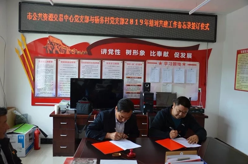 根據(jù)《中共隴南市委組織部關(guān)于扎實(shí)做好幫扶單位黨組織與貧困村黨組織結(jié)對(duì)攻堅(jiān)工作的通知》要求,市公共資源交易中心黨支部與武都區(qū)黃坪鎮(zhèn)楊務(wù)村黨支部在4月啟動(dòng)開(kāi)展結(jié)對(duì)共建活動(dòng)基礎(chǔ)上,組織召開(kāi)雙方黨支部結(jié)對(duì)共建工作聯(lián)席會(huì),進(jìn)一步探討和完善結(jié)對(duì)共建方案,簽訂了《隴南市公共資源交易中心黨支部與武都區(qū)黃坪鎮(zhèn)楊務(wù)村黨支部2019年結(jié)對(duì)共建工作備忘錄》。