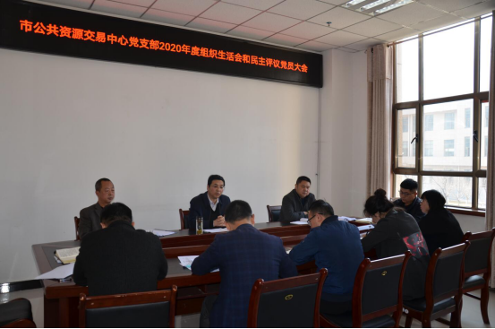 2月23日,市公共資源交易中心召開2020年度黨支部組織生活會暨民主評議黨員大會。會議由黨支部書記姜五軍主持,中心全體黨員參會,中心班子成員以普通黨員身份參加會議。