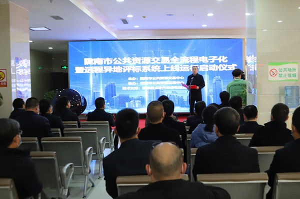 啟動儀式上,中心黨組書記、主任張巍做了致辭,并向參會嘉賓播放了市公共資源交易中心工作匯報專題視頻。隨后大家通過大屏幕觀看了隴南-定西兩地評委實(shí)時遠(yuǎn)程異地評標(biāo)情景畫面;兩地專家準(zhǔn)備就緒后,與會領(lǐng)導(dǎo)發(fā)送系統(tǒng)啟動指令,共同見證了隴南市公共資源交易全流程電子化暨遠(yuǎn)程異地評標(biāo)系統(tǒng)上線運(yùn)行。