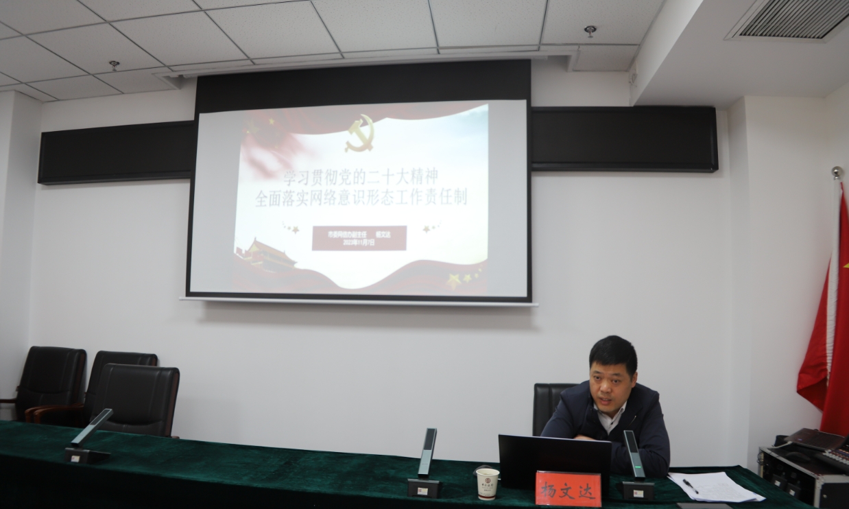 11月7日,楊文達同志以“學習貫徹黨的二十大精神,全面落實網(wǎng)絡意識形態(tài)工作責任制”為題作了專題培訓