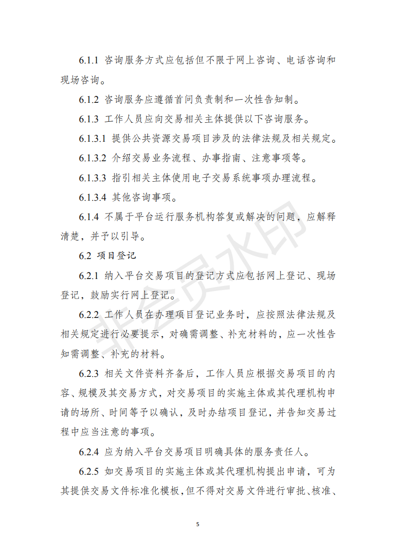 ??一、各地區(qū)應(yīng)根據(jù)有關(guān)法律法規(guī)及《標(biāo)準(zhǔn)》,按照簡化流程、提高效率、公開透明的要求,結(jié)合本地實(shí)際,制定本行政區(qū)域的公共資源交易平臺服務(wù)標(biāo)準(zhǔn),以標(biāo)準(zhǔn)化推進(jìn)全流程電子化、服務(wù)便捷化。