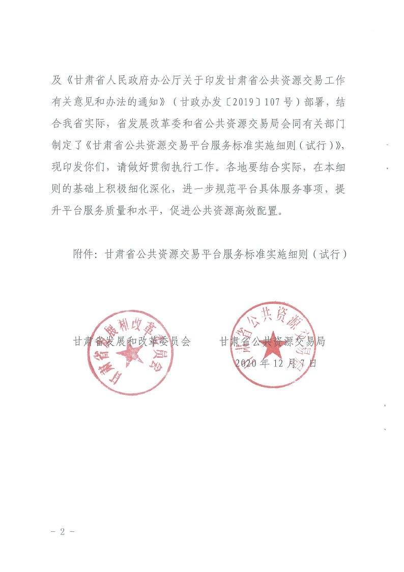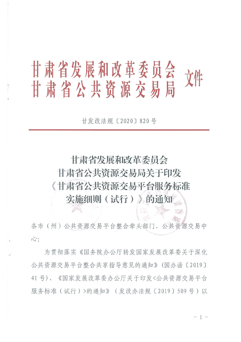 省發(fā)改委省公共資源交易局關(guān)于印發(fā)《甘肅省公共資源交易平臺服務(wù)標(biāo)準(zhǔn)實施細(xì)則(試行)》的通知